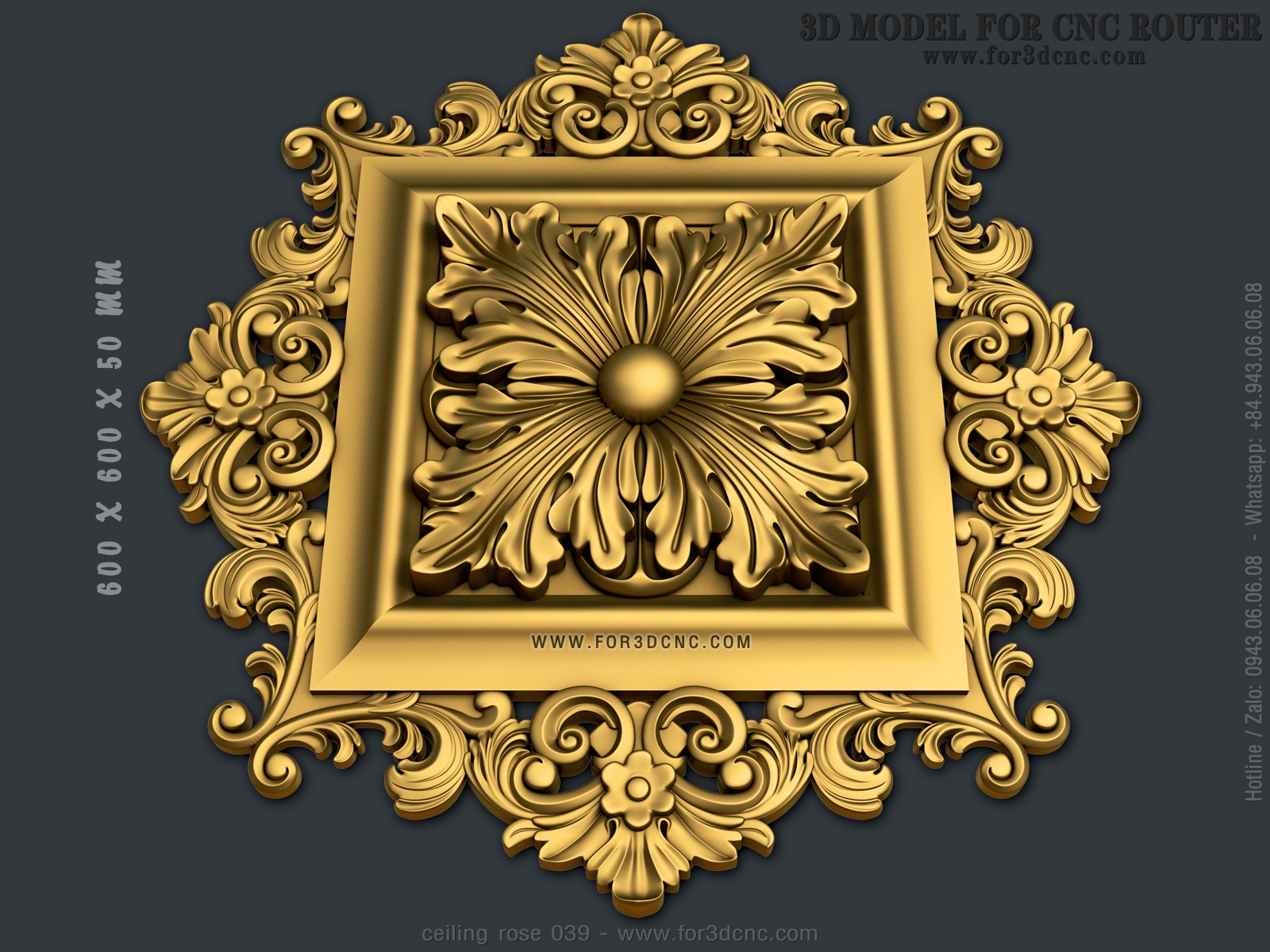 CEILING ROSE 039 | STL – 3D model for CNC 975