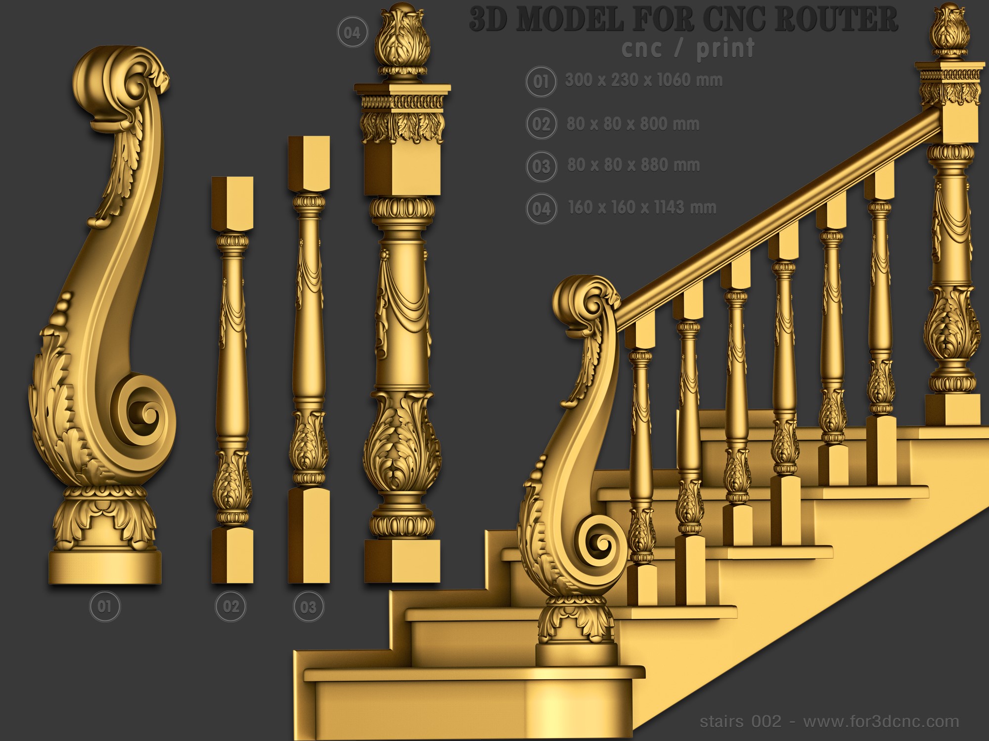 Home » Product » STAIRS 002 | STL – 3D model for CNC